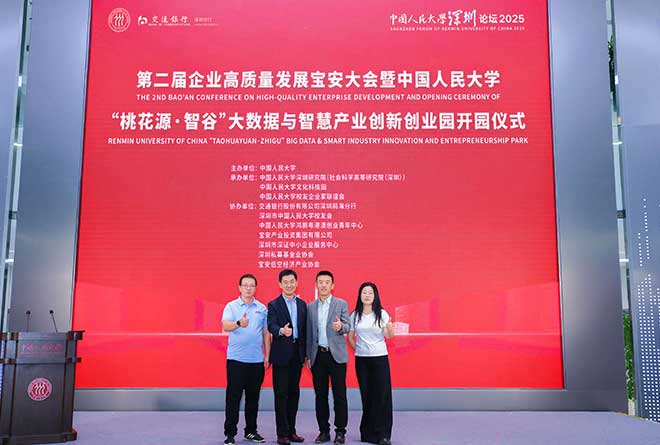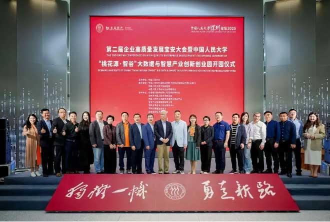 在粤港澳大湾区创新发展的战略引领下,由中国人民大学、中国人民大学深圳研究院联合深圳宝安区人民政府共同打造的"桃花源・智谷"大数据与智慧产业创新创业园正式开园。2025年12月21日,作为第二届企业高质量发展宝安大会的重要组成部分,"赋能AI创新,共创数字未来"人工智能与数字创意专场产融对接会隆重举行。