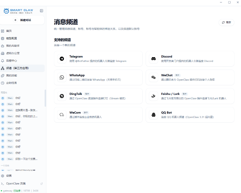 第三,多平台消息中枢。连接飞书、企微、微信、钉钉、QQ,聊天即指令,结果自动回传,在你授权下,手机远程发起任务,随时随地指挥9大助手。
